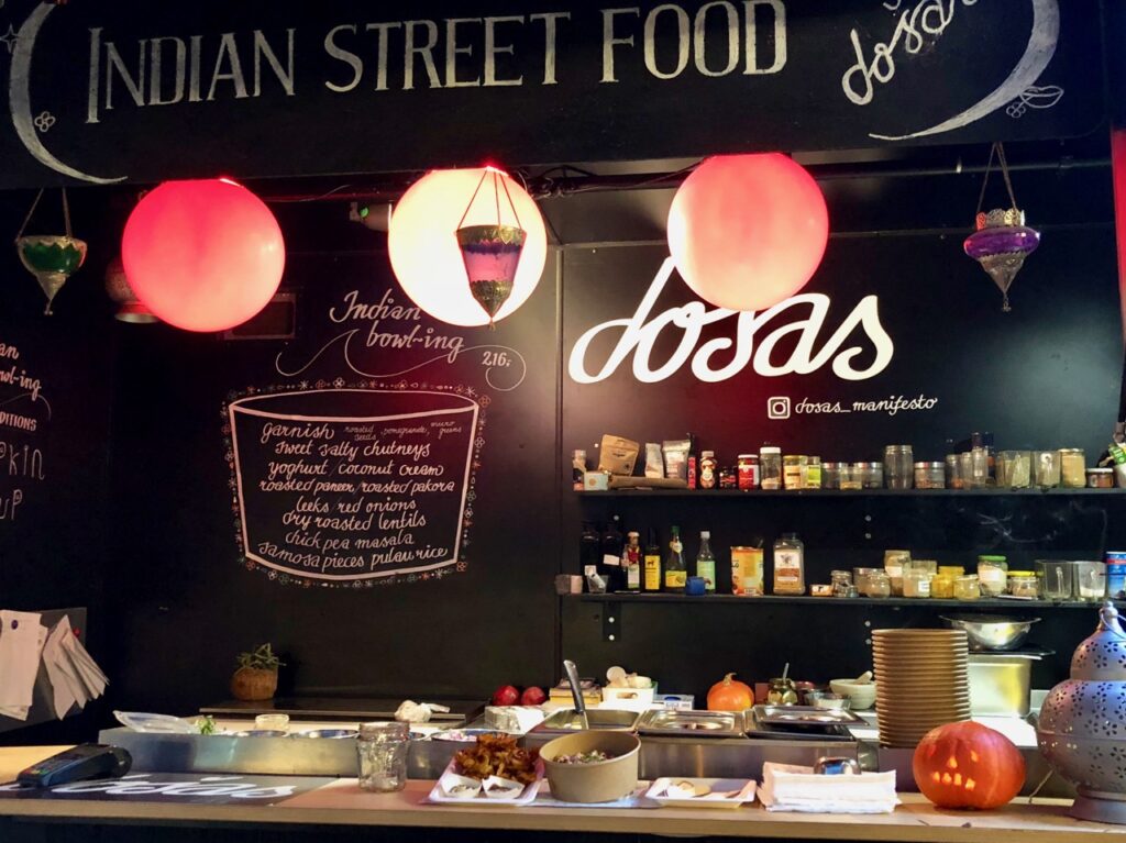 Ce n’est pas un resto et pourtant on y mange. Manifesto est un « food market » à ciel ouvert, un endroit très branché, très bobo, l’un des premiers marchés « cashless » en Europe. Pour le dire en français, c’est un marché où on n’utilise plus d’argent liquide. On paye uniquement avec sa carte de crédit ou une app dédiée.