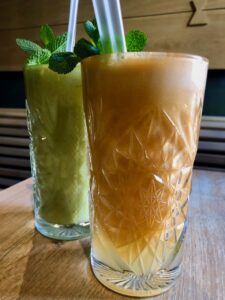 Mais ce dont je me souviendrai surtout, c’est ce délicieux jus, orange/citron/carotte/pomme/gingembre, avec beaucoup de gingembre, comme j’aime.