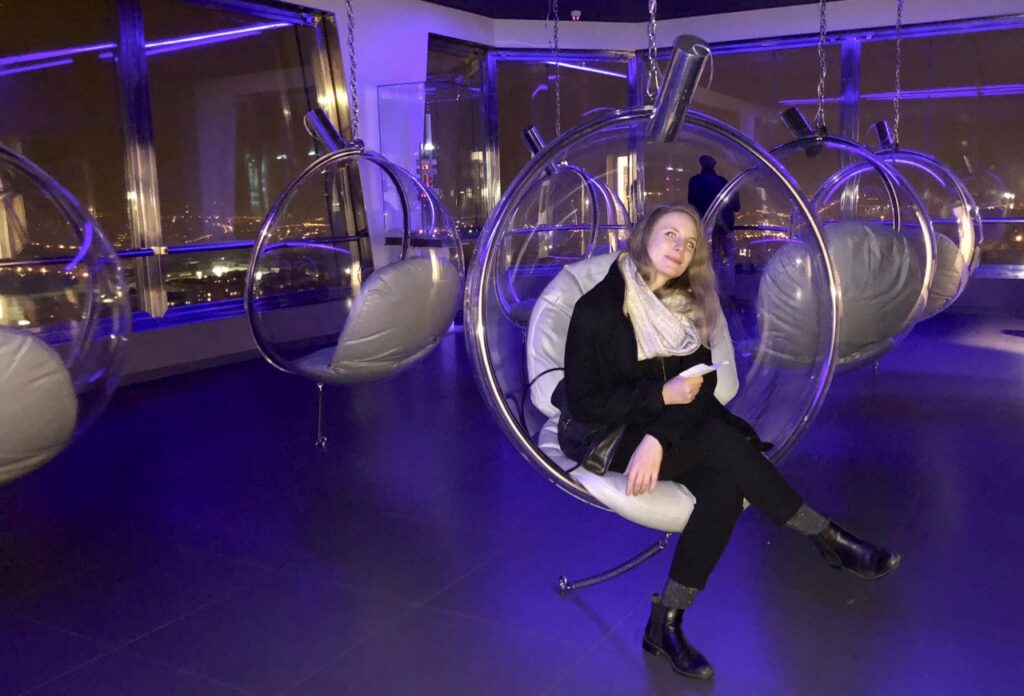 Oblaca est en effet un restaurant panoramique, perché dans la tour de la télévision, la plus haute de Prague, un peu à l’écart du centre.