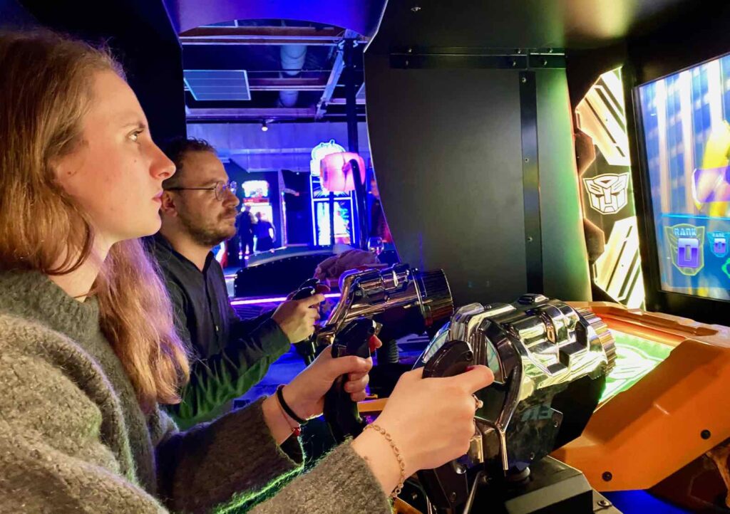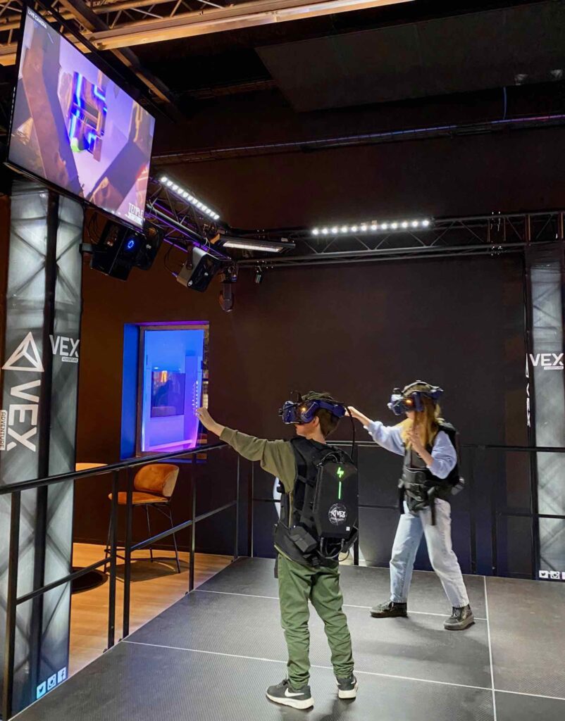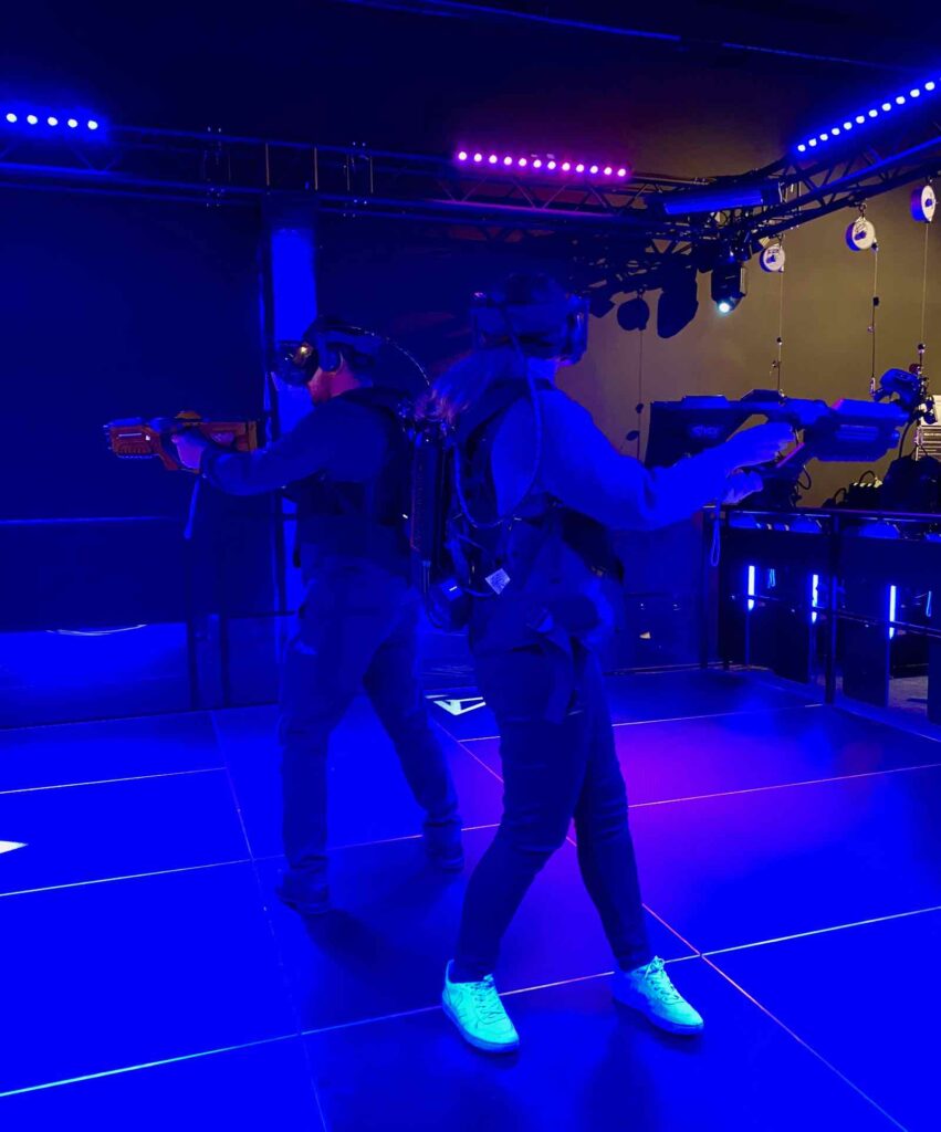 À l’issue d’une bonne partie de rigolade aux jeux d’arcade, les deux trentenaires ont décidé de sauter le pas de la réalité virtuelle 4D Vex Adventure. Sans moi, qui ai lâchement préféré manier l’appareil photo plutôt que le fusil anti-zombies.