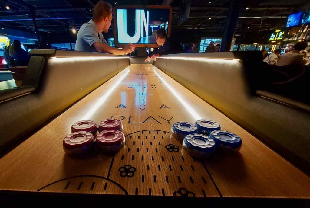 Et depuis peu, il est également possible de s’essayer au Shuffle Board, un jeu souvent présent dans les pubs anglais mais qui m’a plutôt fait penser au curling.