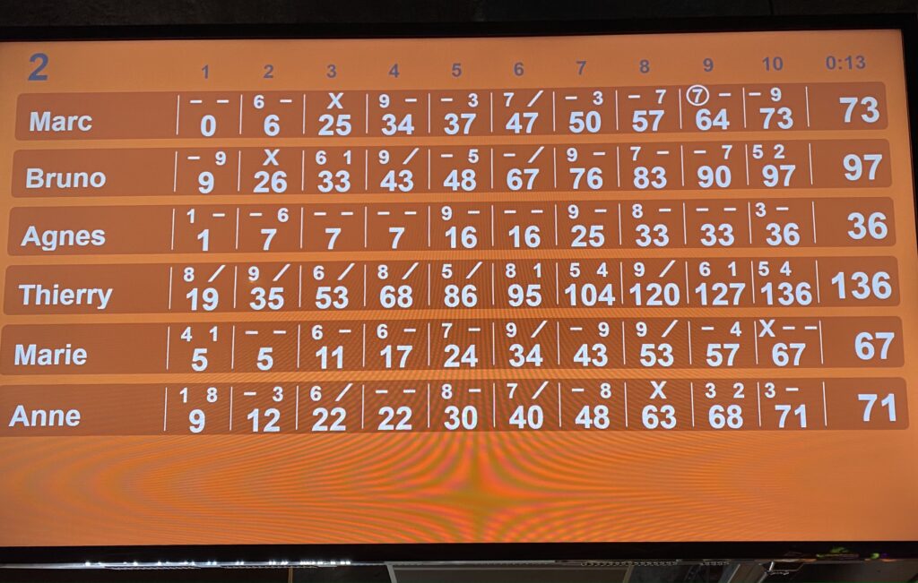 Ce que je peux en revanche vous dire, c’est que notre champion incontesté, c’est l’ami Thierry. Il a enchaîné toute la soirée les spares… avec un style personnel mais diablement efficace !