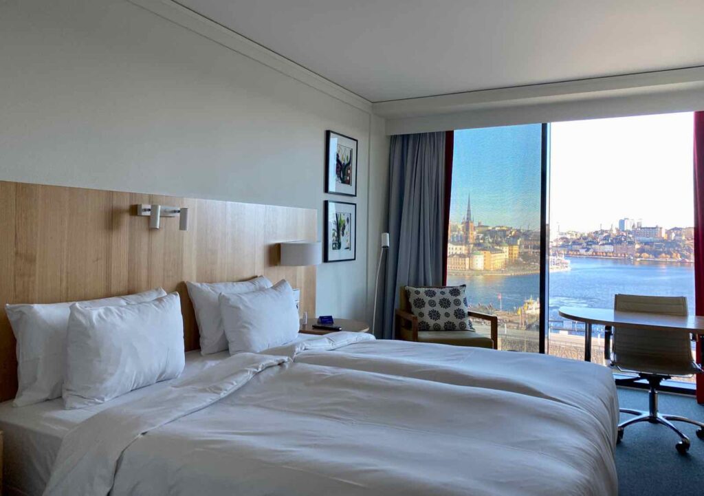 En général, j’aime bien les Radisson Blu, que je trouve dans l’air du temps et offrant un bon confort. Celui de Stockholm offre en plus une vue à couper le souffle sur l’île de Kungsholmen et l’hôtel de ville, ce qui a achevé de me convaincre d’y poser nos petites valises et d’en faire l’une de nos bonnes adresses à Stockholm.