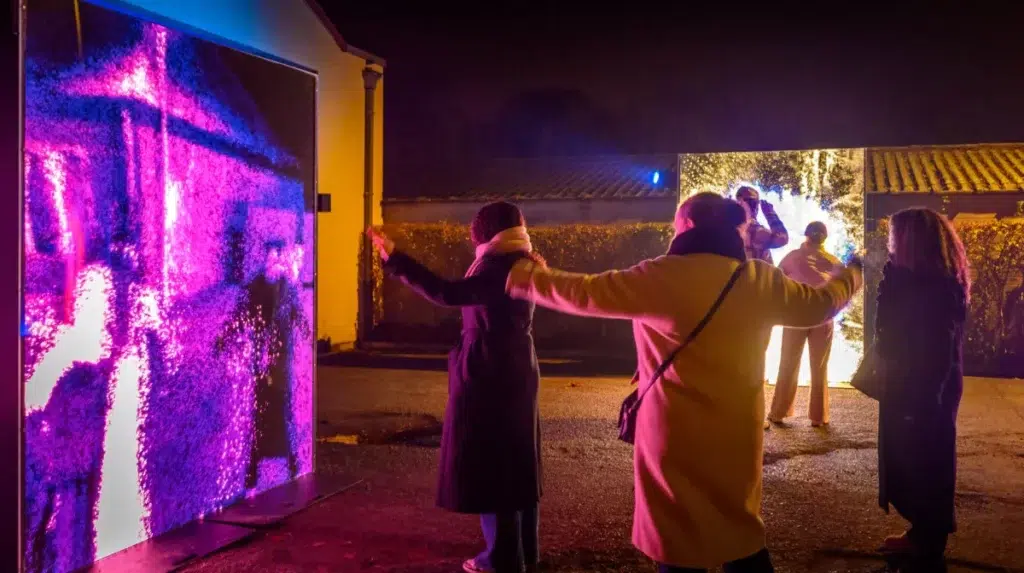 Le spectateur se balade, admire mais interagit également en mettant la lumière en mouvement ou en générant des ondes.