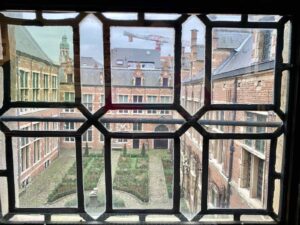Anvers-musee-Plantin-Moretus-cour-a-travers-vitre