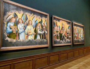 Dieu le Père avec des anges chanteurs et musiciens, 1483-1494, Hans Memling