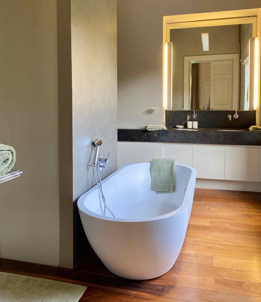 Chaque chambre est différente et toujours prolongée par une salle de bain privative.