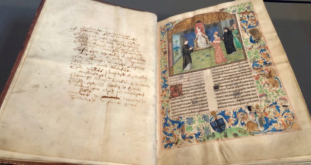 Et que dire de ce somptueux manuscrit enluminé réalisé par un célèbre copiste du temps des ducs de Bourgogne ? Louis de Gruuthuse possèdait une importante bibliothèque, qui asseyait son prestige et montrait son rang…