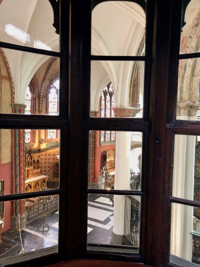 Un petit mot aussi de l’oratoire de Louis de Gruuthuse, édifié vers 1472. Un joyau médiéval, très joliment restauré lors des récents travaux. Une loge VIP en quelque sorte pour assister aux offices dans l’église Notre-Dame voisine, sans se mêler au petit peuple.