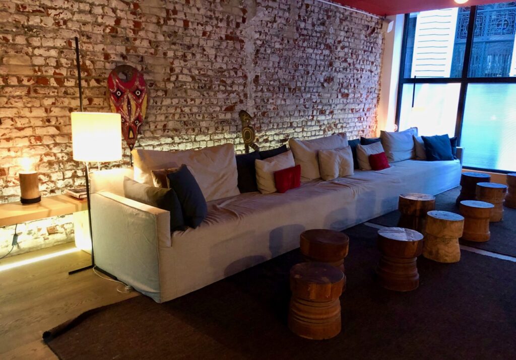 Avec ses poutres en béton, ses murs en briques apparentes et son mobilier minimaliste, parfois chiné au Rajasthan en Inde, le 9 Central Hotel dévoile son côté loft dès les espaces communs.