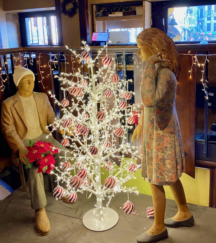 Et si vous passez à l’intersection de la rue de l’Étuve et de la rue du Chêne, ne manquez pas de dire un petit bonjour au Manneken-Pis, qui s’est bien emmitouflé pour l’hiver, lui donnant un air de Petit Chaperon rouge.
