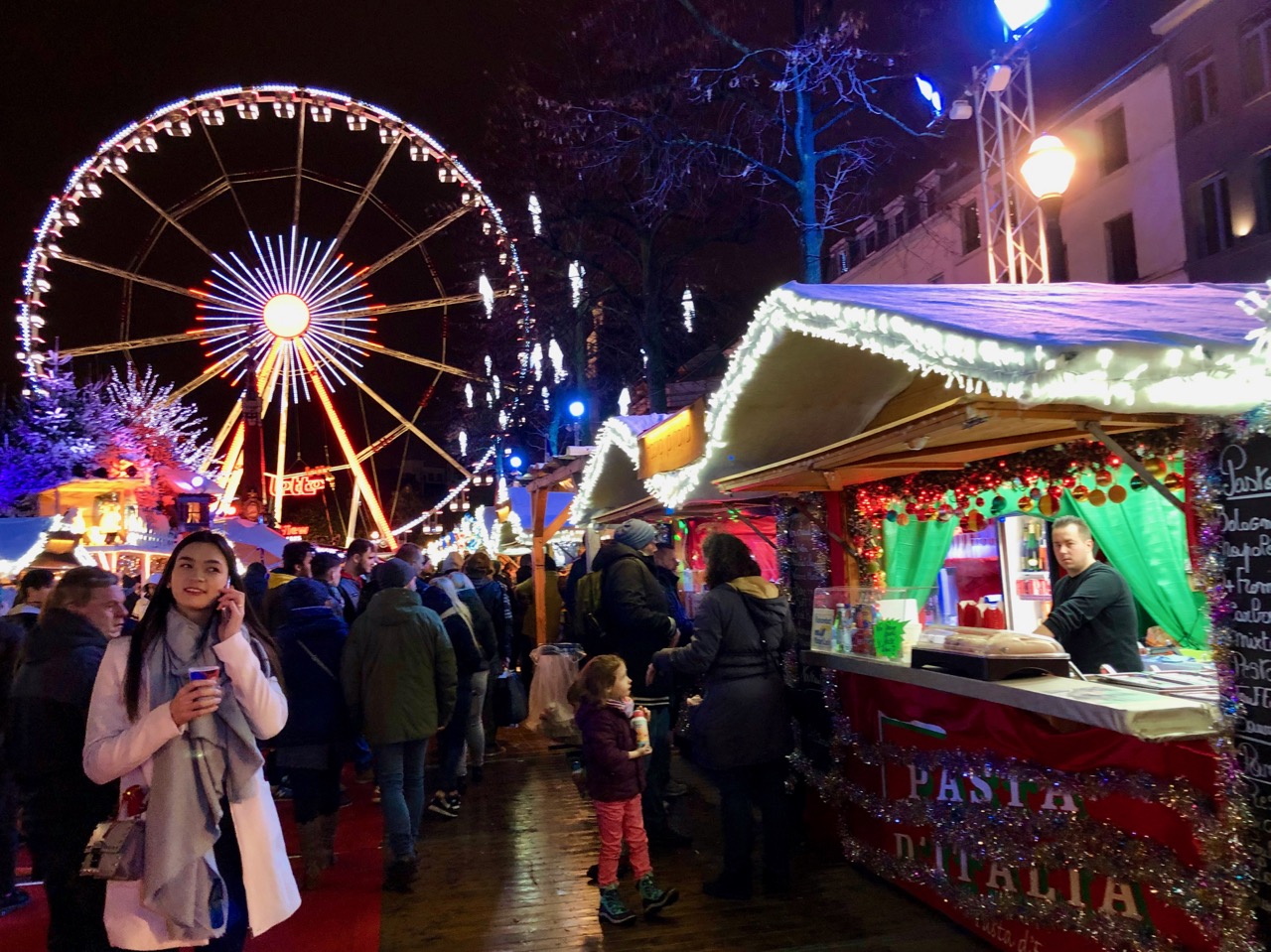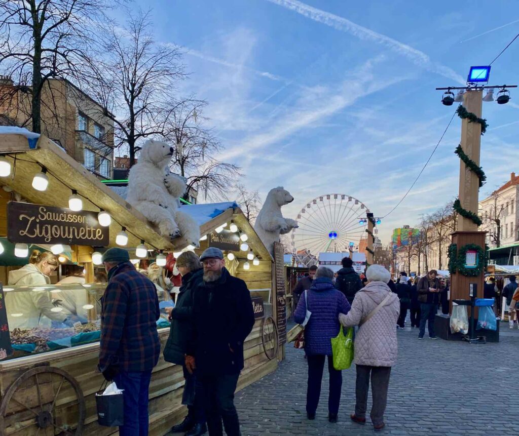 Mon endroit préféré des Plaisirs d’hiver 2024 ? Sans conteste le Vismet, derrière l’église Sainte-Catherine, où on trouve la plus grande concentration de chalets…