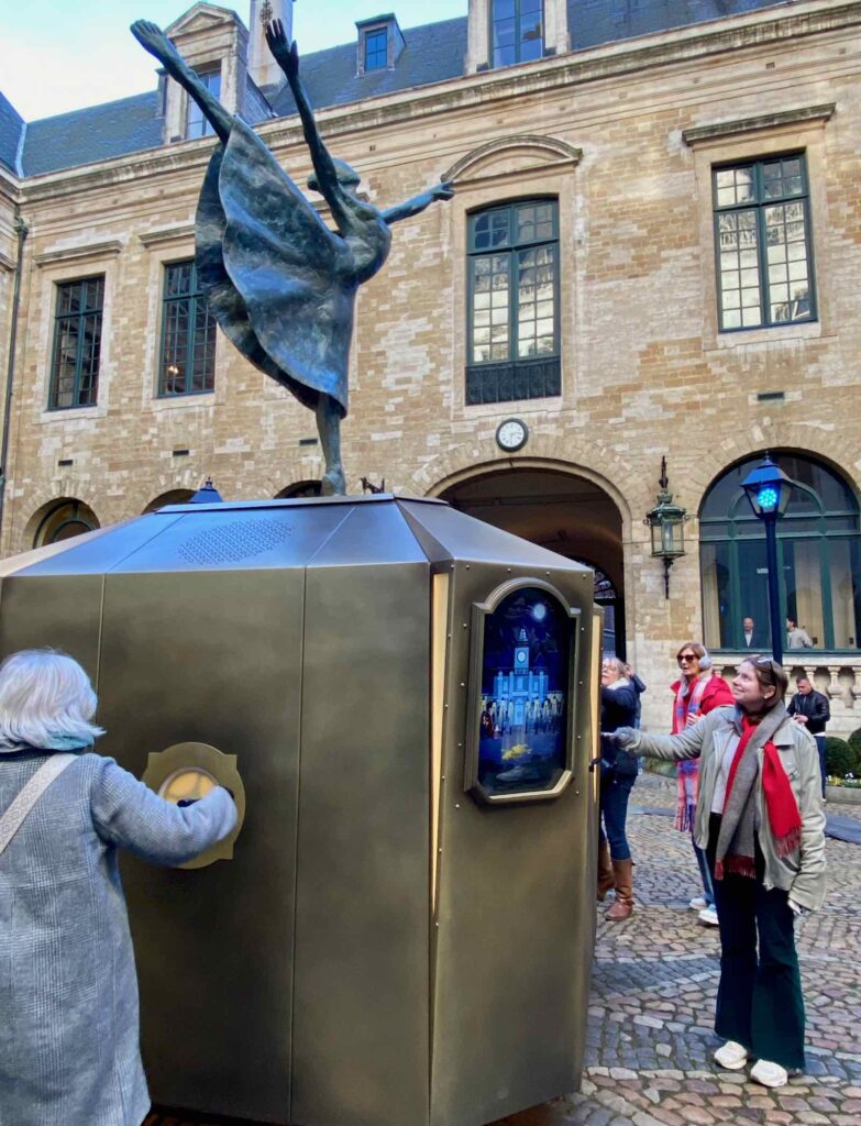 Juste derrière, dans la cour de l’Hôtel de ville, Lucia, installation interactive québecoise, invite les promeneurs à prendre part au spectacle musical. En tournant une manivelle, ils feront ainsi danser la ballerine, au rythme d’un petit film musical animé, plein de poésie.