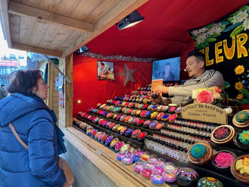 Outre ses nombreux chalets, la place de la Bourse accueille également l‘invité d’honneur 2024 de ces Plaisirs d’hiver. Il s’agit du Var, présenté comme « la destination préférée des Français » et l’essence même de la Provence Côte d’Azur. Les artisans et producteurs varois présentent leur savoir-faire et proposent, notamment place de la Bourse et rue Auguste Orts, leurs savons, confitures, bougies, parfums et produits de bouche réalisés dans la tradition provençale. Mais je crois bien que c’est l’animation autour de la 2 CV du Gendarme de Saint-Tropez qui a remporté le plus gros succès.