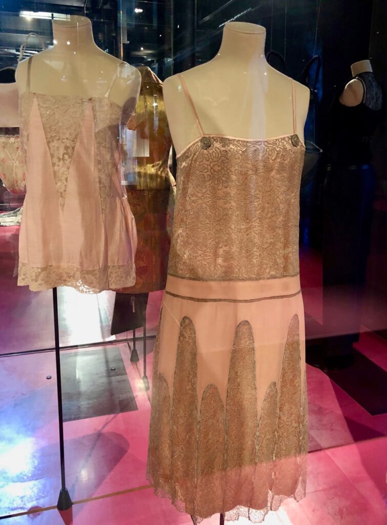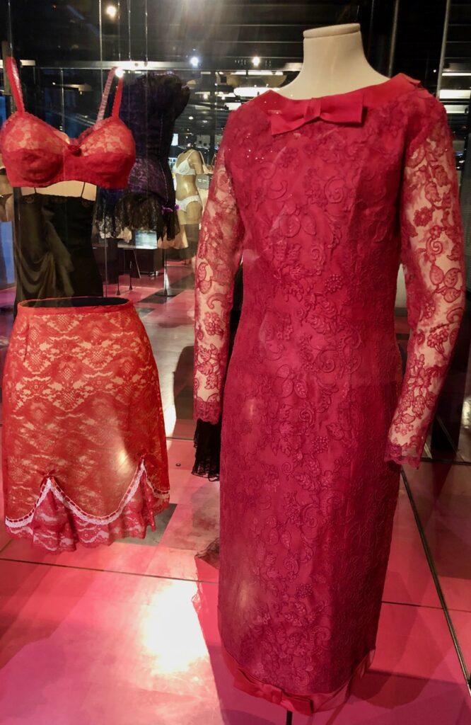 Musée industriel, la Cité est également un musée de mode, qui présente grands couturiers et jeunes créateurs. Certains modèles m’ont fait rêver, comme cette petite robe très « shiny » ou ces dessous élégants mais d’un autre temps.