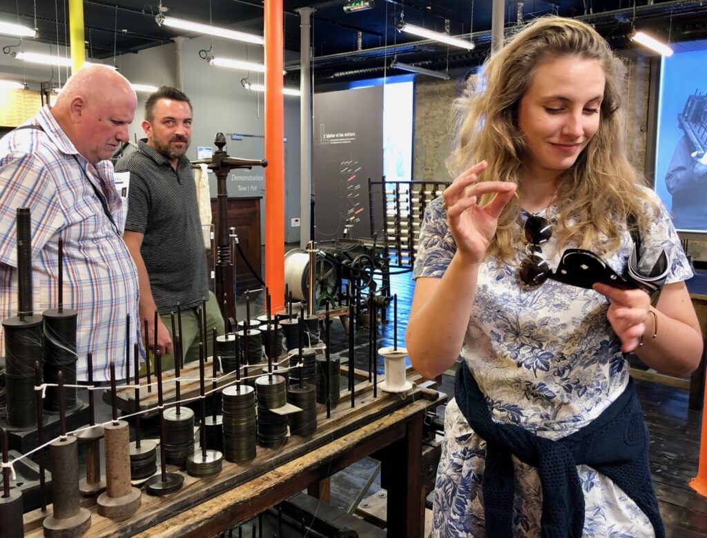 Mais la dentelle de Calais, c’est aussi une trentaine de métiers différents, tous ultraspécialisés. Pour les découvrir, les visiteurs sont invités à participer à un petit jeu, dont le but est d’associer un métier à un objet qui le caractérise.