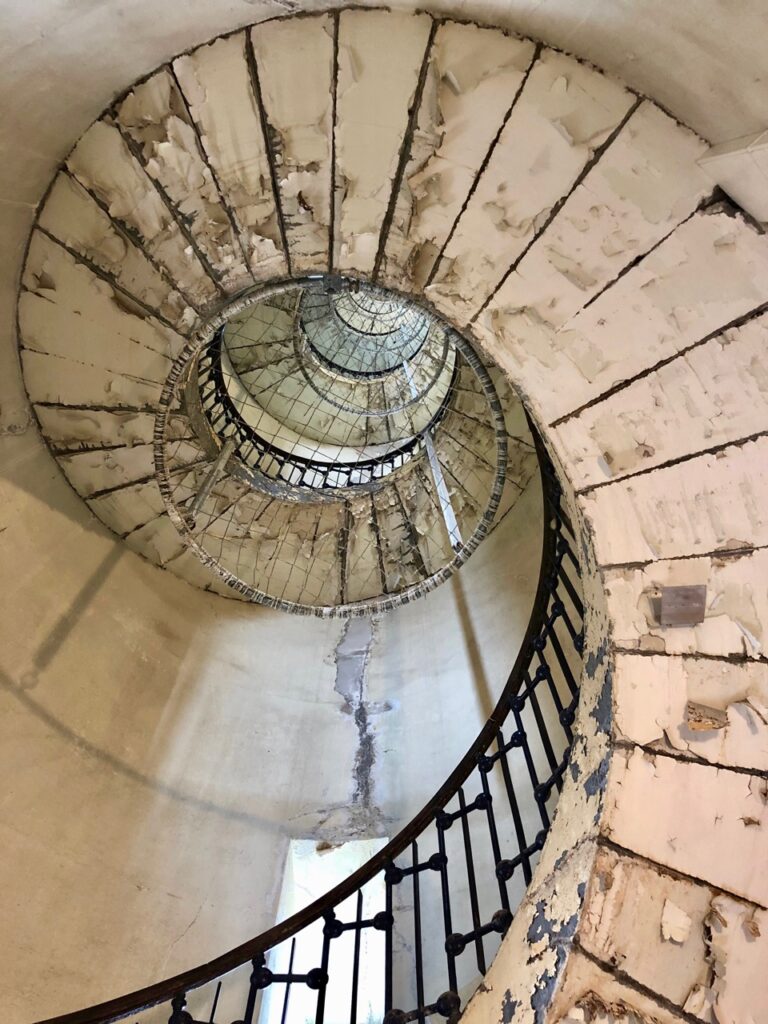 J’ai beaucoup aimé le vieil escalier qui tournicote, tournicote et amène au sommet, à 58 mètres de haut. Construit en 1848, le phare de Calais a une vraie gueule d’atmosphère, comme on n’en fait plus…
