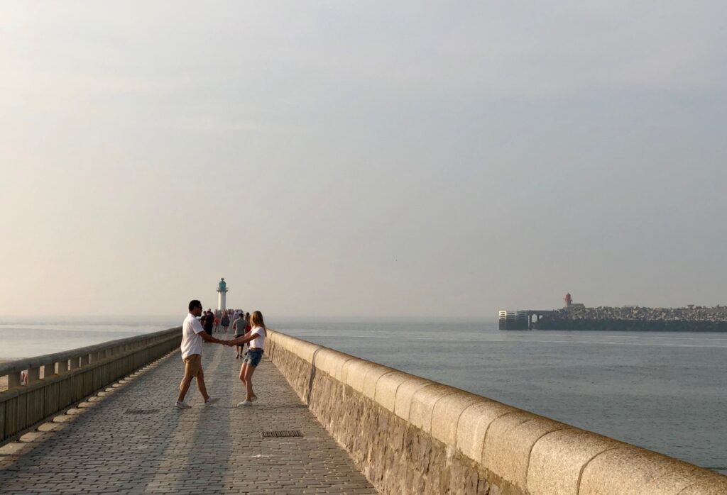 J’adore aussi la jetée qui permet de marcher sur l’eau ou de faire une partie de pêche, mais surtout de respirer, respirer ! Avant, peut-être, de manger une frite achetée dans une baraque de la digue ou de s’attabler dans l’une des brasseries qui ont vue sur mer. Même lointaine, cette vue n’a pas de prix…