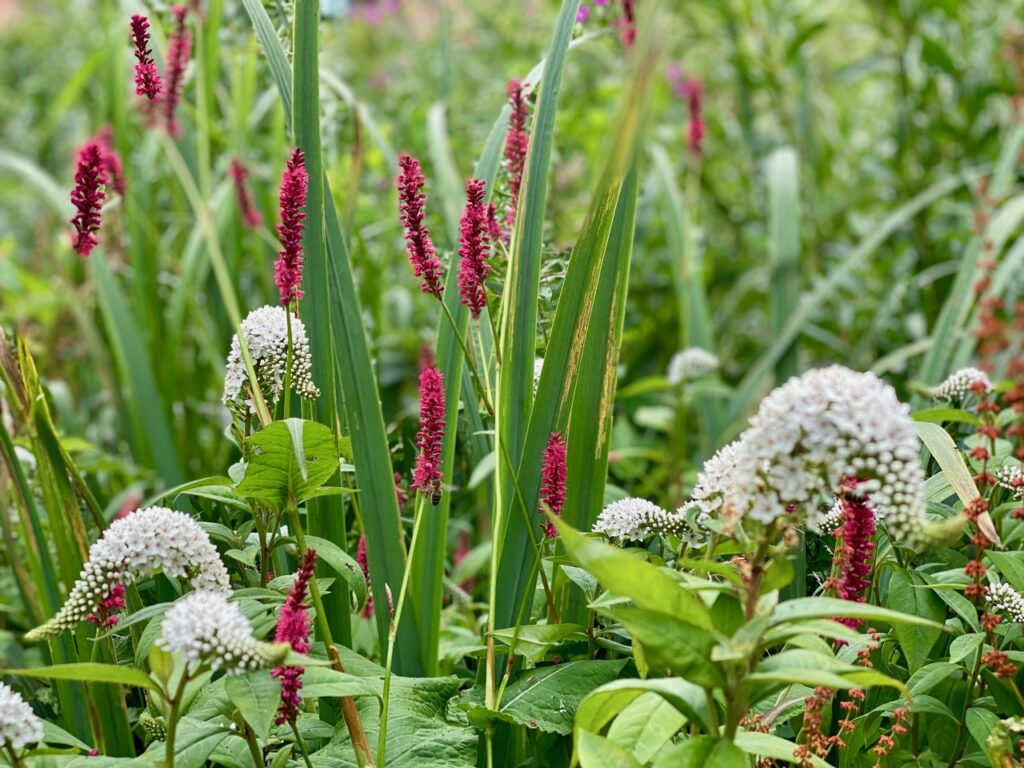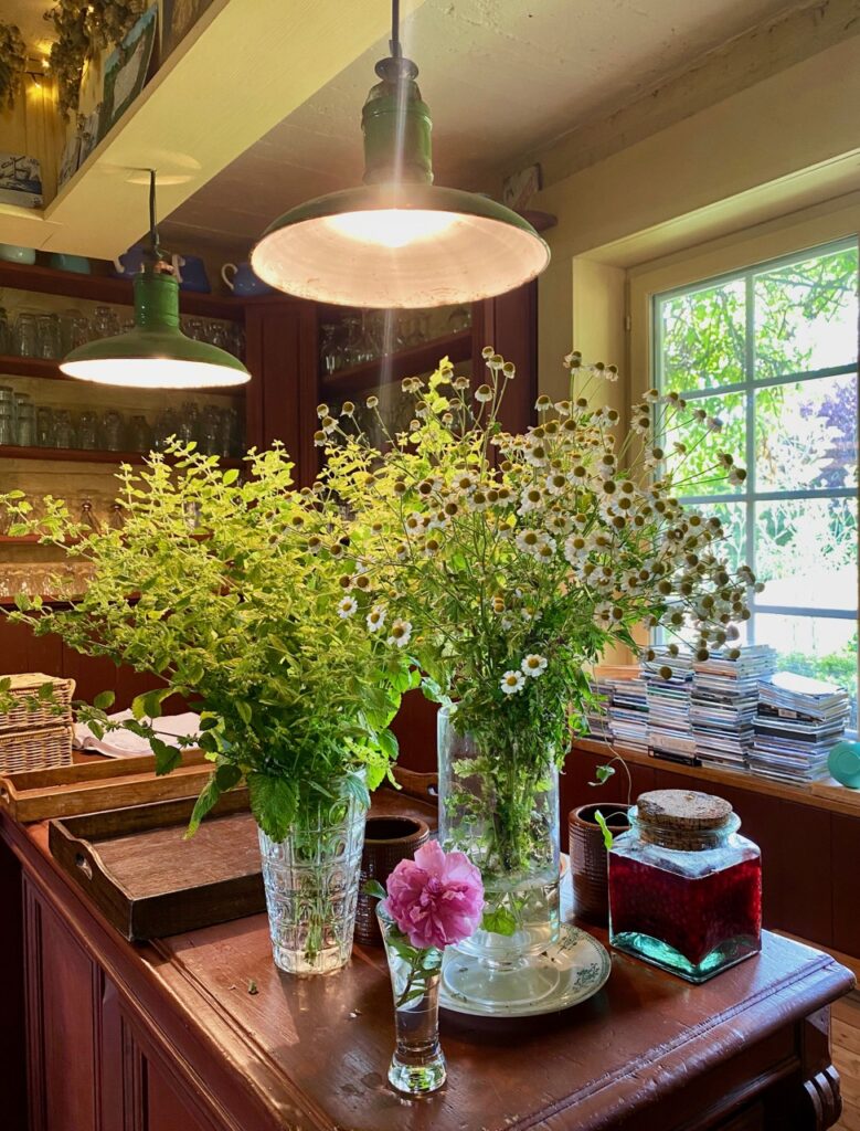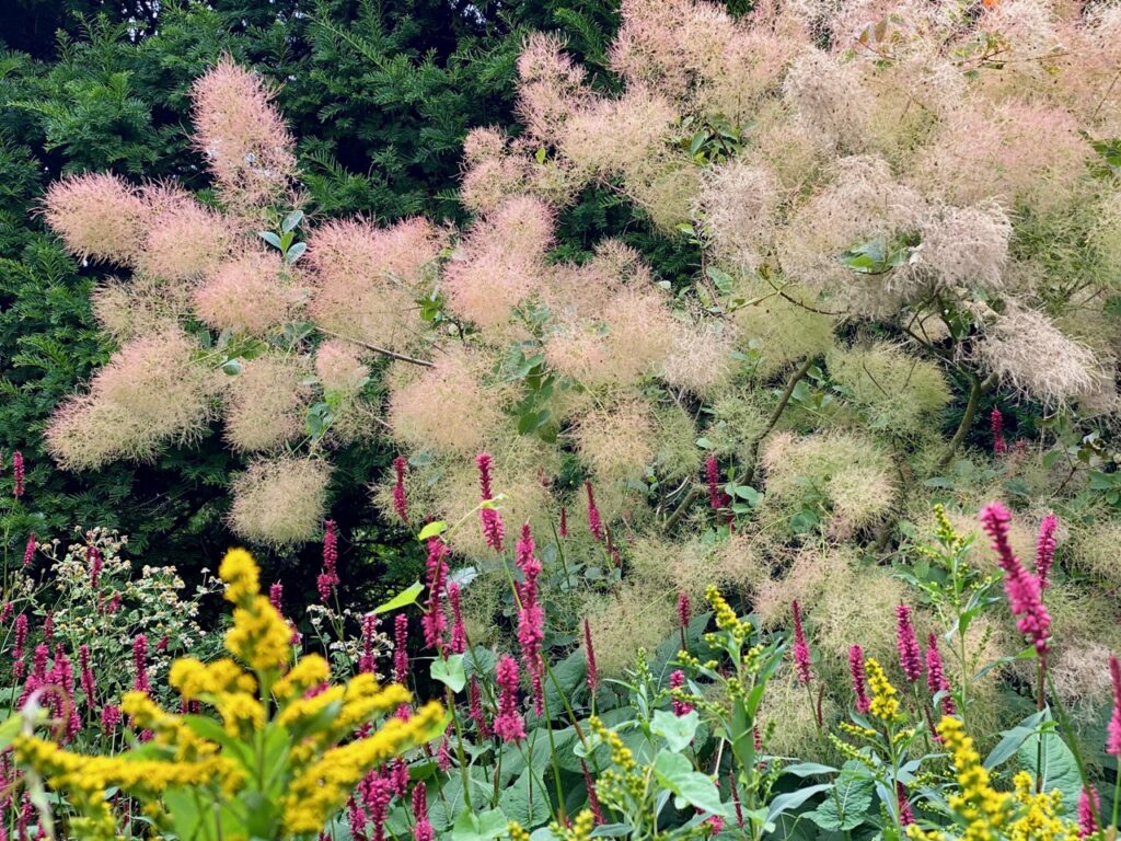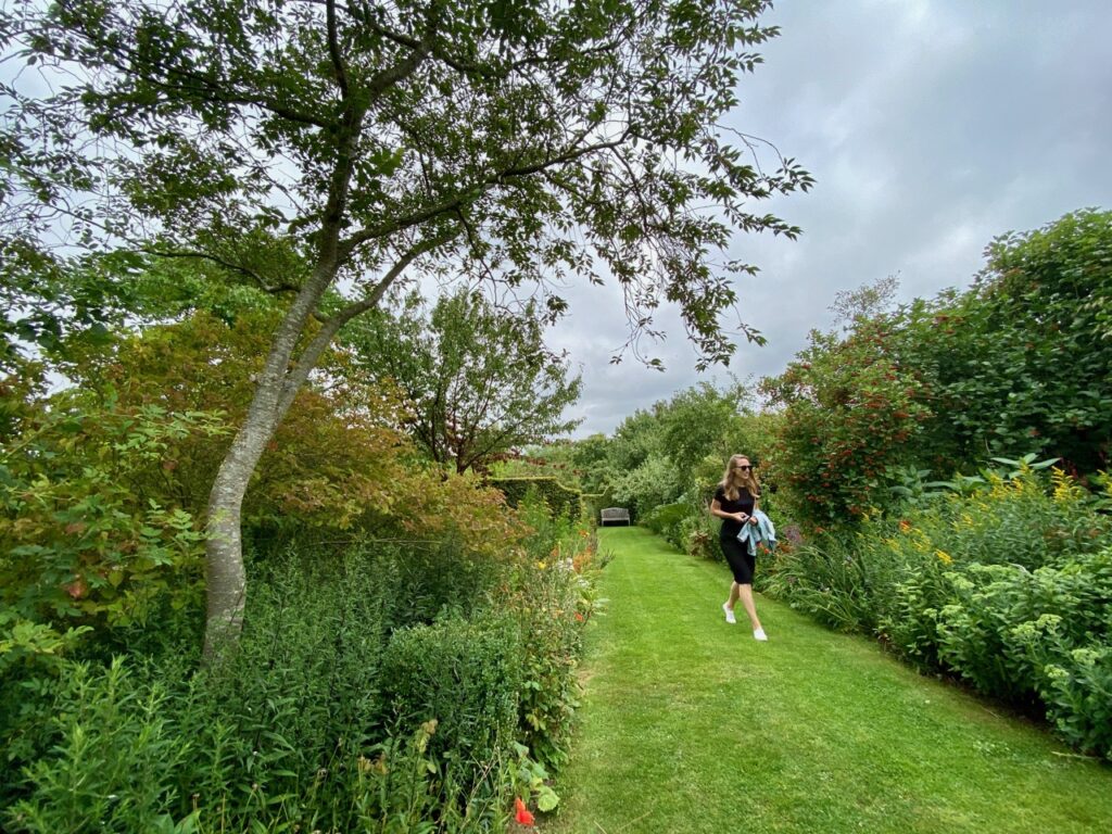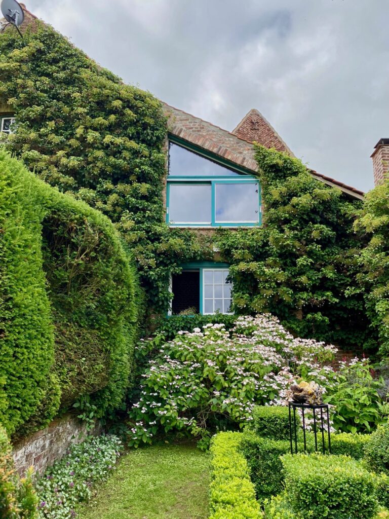Les massifs d’hortensias (et pas qu’eux) courent aussi de l’autre côté de la chambre, ourlant l’arrière de la ferme en brique. Un banc tend les bras aux visiteurs, leur offrant une pause pour mieux admirer toute cette beauté.