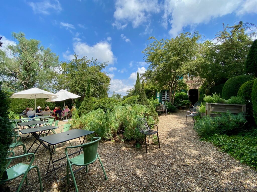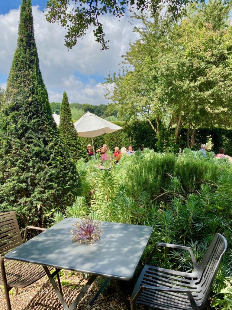 S’agissant d’un estaminet au jardin, on peut aussi déjeuner dehors, sous un parasol ou juste sous les arbres. Le bonheur est (vraiment) au jardin !