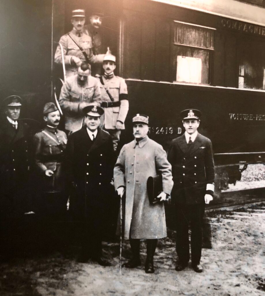 Mais je me suis particulièrement arrêtée devant une (vraie) affiche de l’Ordre de mobilisation générale. Et aussi devant cette photo prise juste avant que le maréchal Foch parte à Paris pour porter à Georges Clémenceau la convention d’Armistice signée. Il est entouré des Français et des Britanniques composant la délégation.