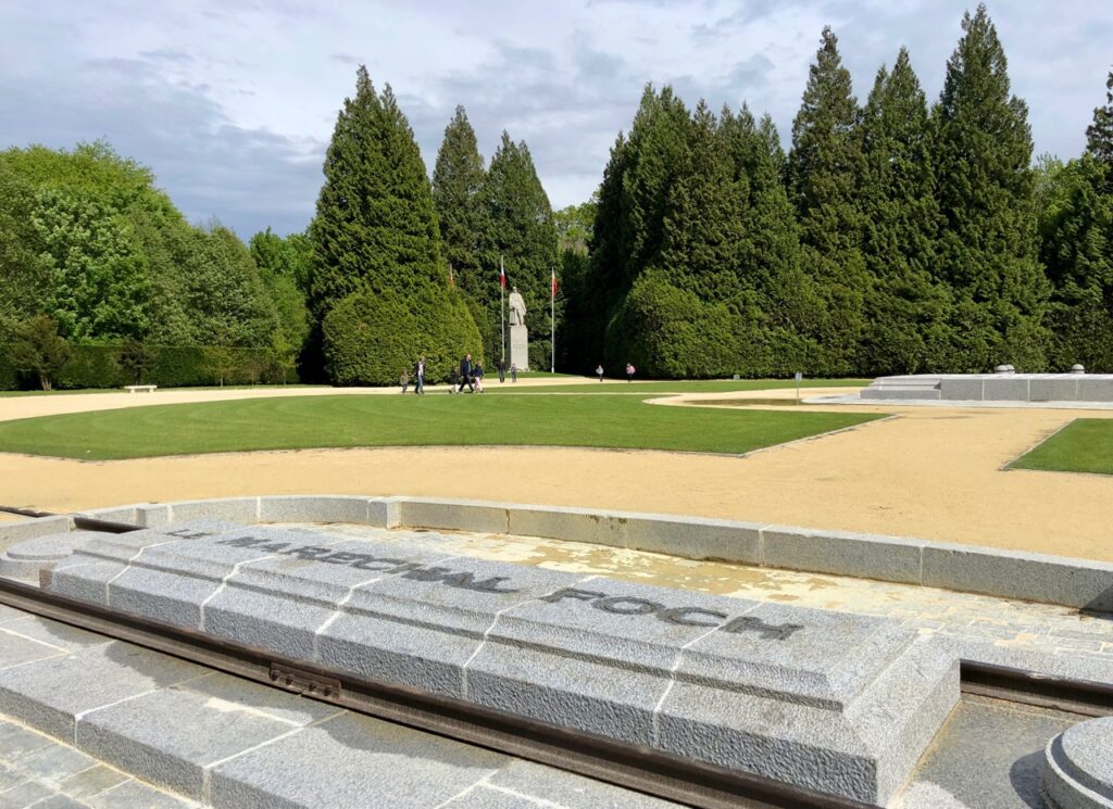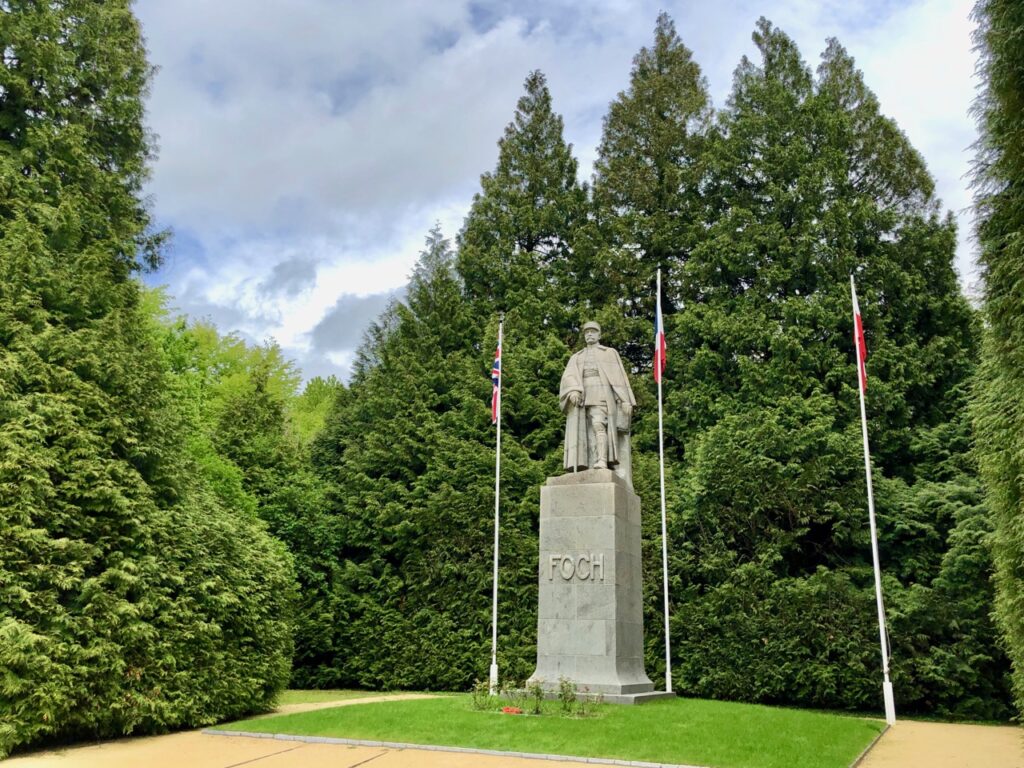 Outre le bâtiment du musée, on trouve dans cette clairière (en 1918, c’était une simple futaie, un endroit calme, retiré et discret) une statue du maréchal Foch, un jardin de la mémoire, un monument de la paix, mais surtout les emplacements, bien matérialisés au sol, où étaient garés les deux trains.