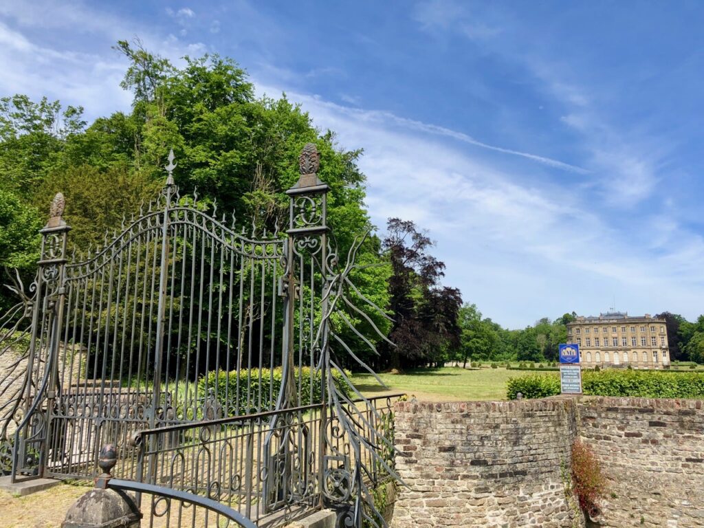Sachez donc qu’il faut prendre la D 935, en direction de Péruwelz, en Belgique. À la sortie de Condé-sur-l’Escaut, un peu avant la frontière (et la basilique de Bon-Secours), tournez à gauche. Un panneau indique la direction du château.