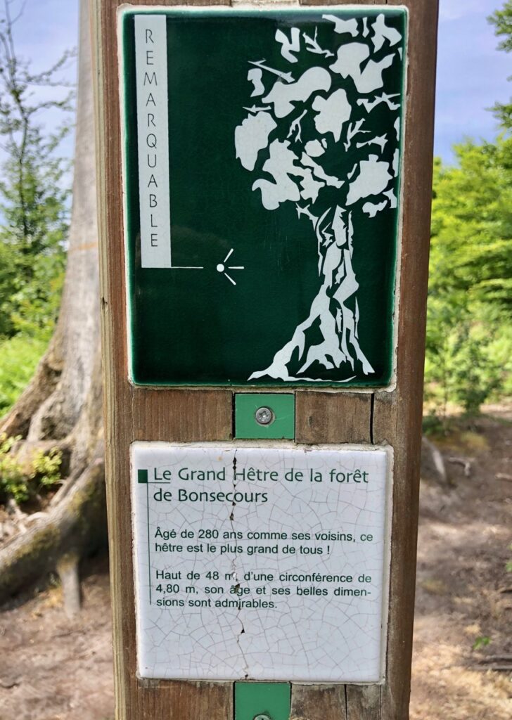 Encore quelques pas et vous voici à hauteur du grand hêtre de la forêt domaniale de Bonsecours. Ses 280 ans et ses 48 mètres de haut en font un arbre vraiment remarquable !