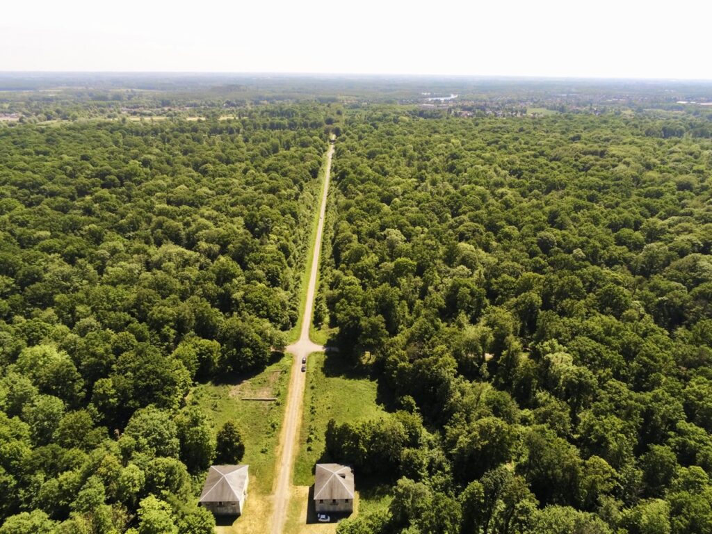 Impossible de s’approcher mais grâce à Anafi, fidèle petit drone, voici deux vues du château de l’Hermitage et de ses dépendances. Le domaine est entouré de huit grandes allées, qui permettaient de suivre la chasse…