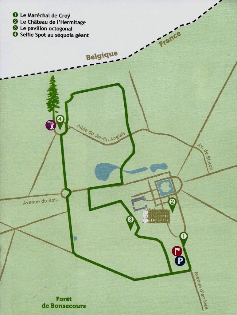 Si j’aime beaucoup la présentation de ce petit livret (4 pages et un plan pour chaque balade), il manque quand même quelques indications pratiques pour trouver ce fameux château de l’Hermitage. Car ne comptez pas sur d’éventuels panneaux, dans la commune de Condé-sur-l’Escaut. Pas vu un seul…