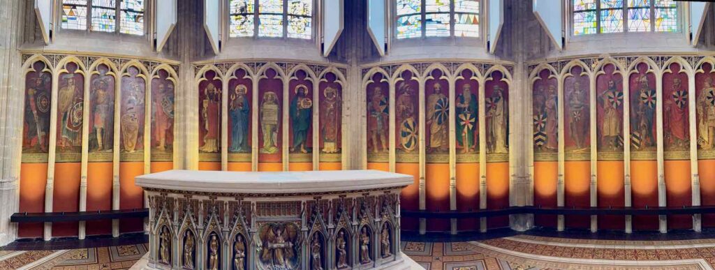 De l’autre côté de la collégiale, ne manquez pas non plus la chapelle des comtes et sa galerie de délicats portraits des comtes de Flandre. Je les trouve magnifiques et je vous ai fait un panoramique, histoire de capter le maximum de personnages sur une même image.