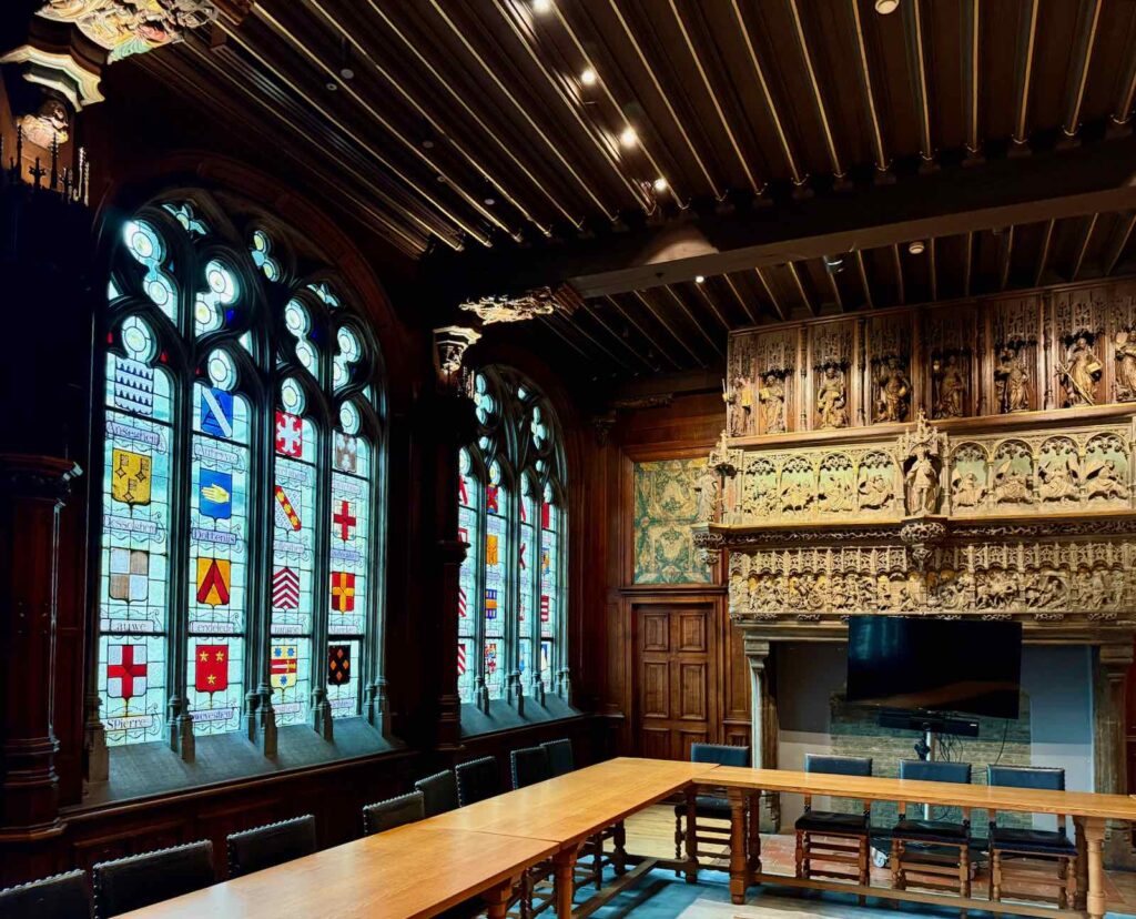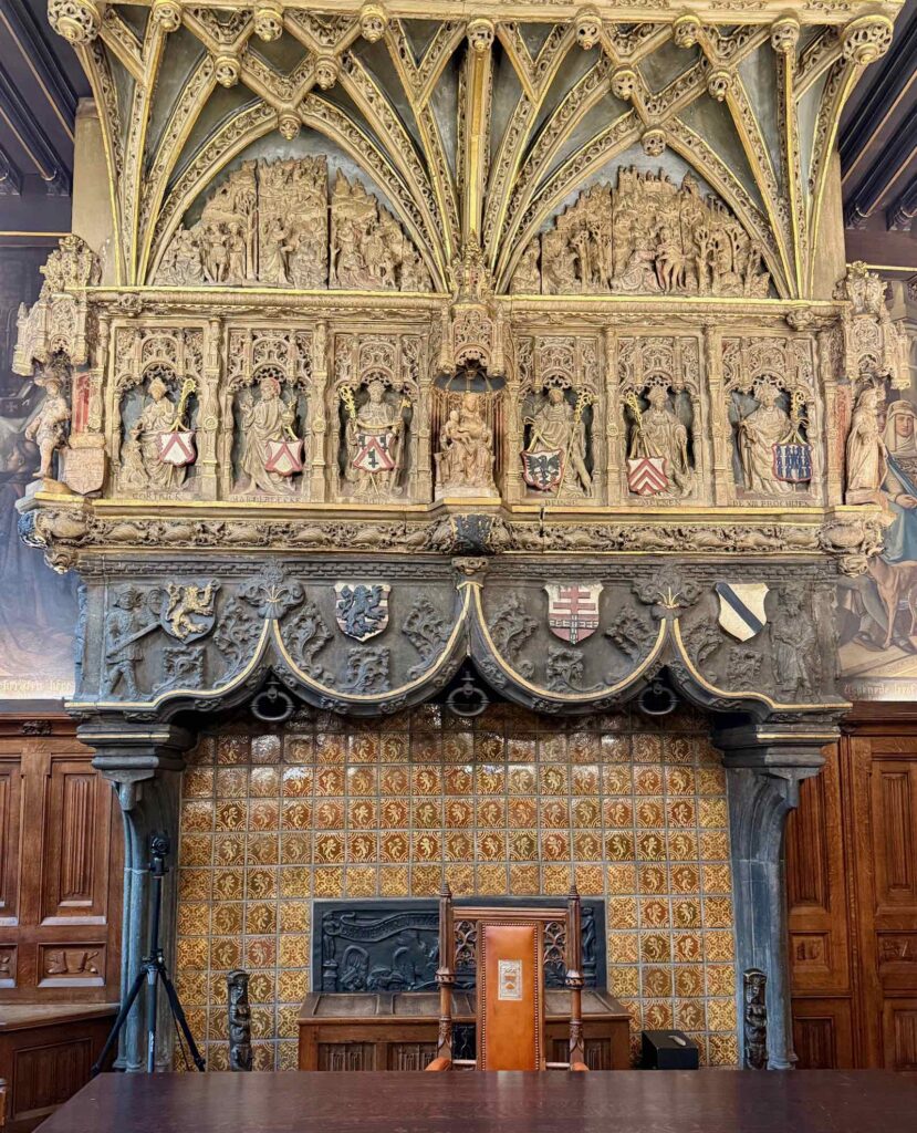 Salle des échevins, salle du conseil, vitraux avec les différents métiers du XVe, impressionnantes peintures du XIXe, cheminées monumentales… La richesse passée de la ville se lit au fil des salles et des éléments de décoration du bâtiment.