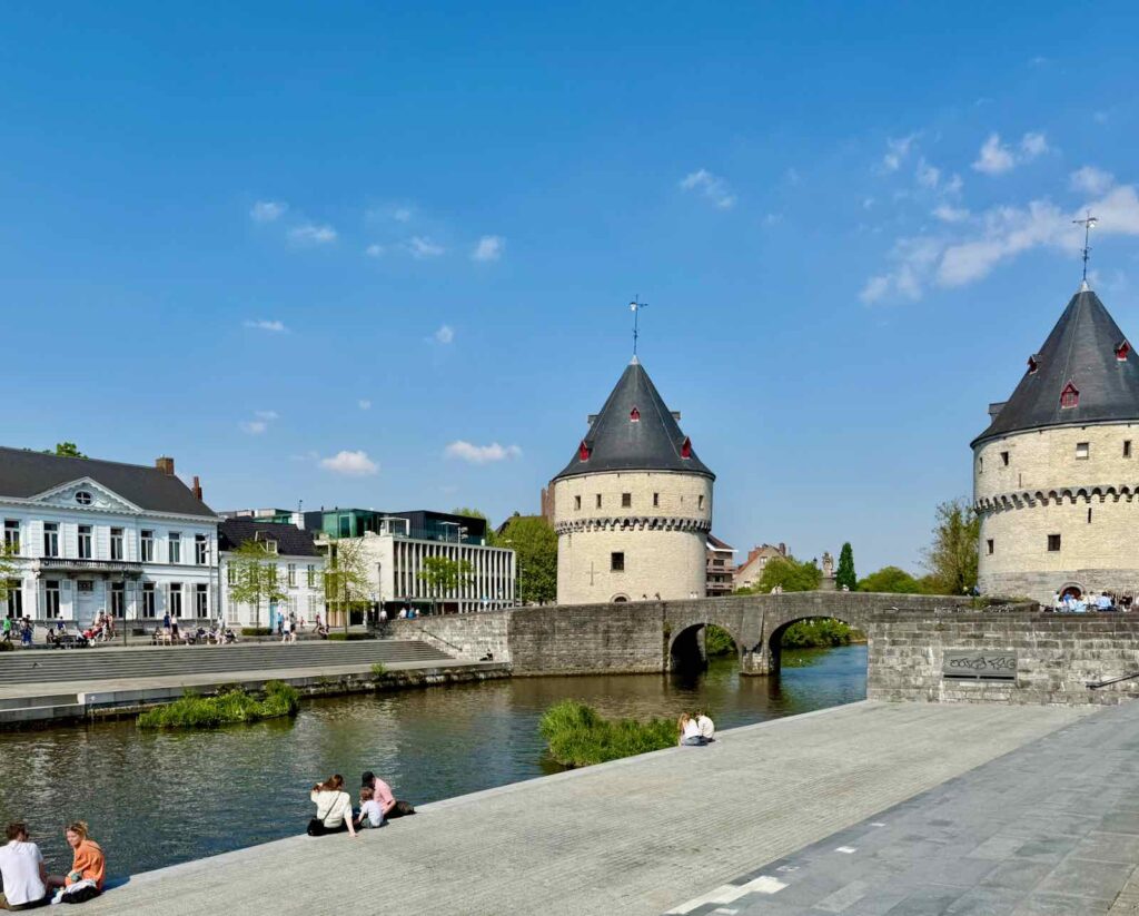 Partant des tours Broel, les rives de la Lys ont été abaissées et superbement aménagées. Cafés et terrasses donnant sur la rivière y prennent aujourd’hui leurs aises, offrant aux visiteurs un moment de pause et de contemplation.