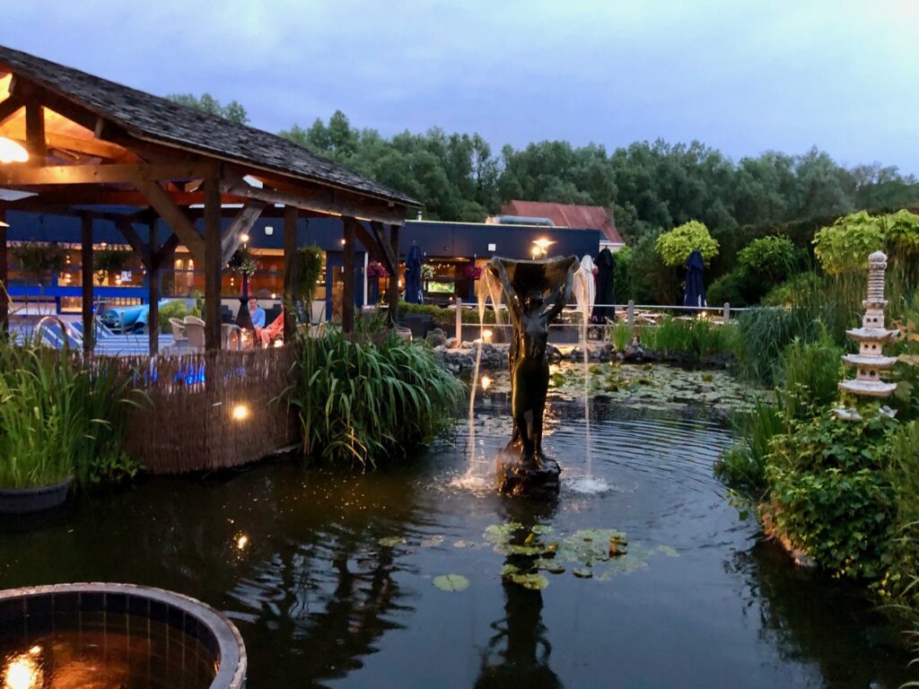 Juste une petite précision pour commencer. Le règlement des thermes de Dilbeek interdit l’usage des GSM (ou téléphones portables si vous préférez) et donc de faire des photos. Pourtant, j’en ai « volé » quelques unes pour illustrer cet article. Au crépuscule, à la nuit tombée ou en prenant soin que personne ne figure sur mes clichés, excepté mon compagnon. Car impossible de faire un article, et surtout de donner envie, sans photos. J’espère donc qu’on ne m’en tiendra pas rigueur…