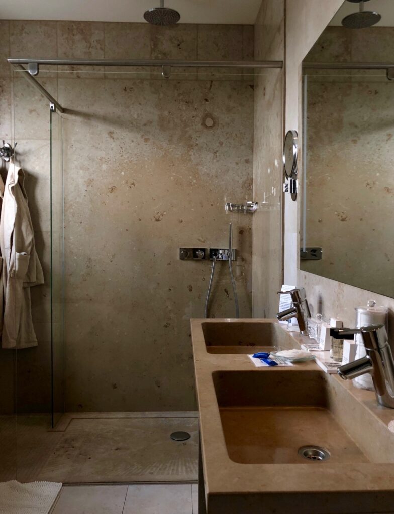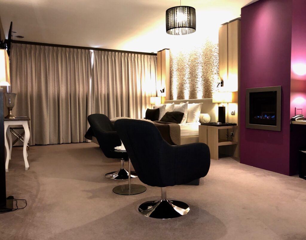 Elle a été la divine surprise de ce séjour. Notre chambre d’hôtel (la 101), immense et avec une cheminée à gaz en guise de cerise sur le gâteau.