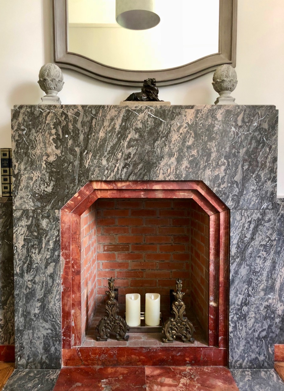 Puis méga gros coup de cœur pour le salon des hôtes repeint dans les mêmes tons que la façade. Dont un élégant gris foncé pour l’escalier, lui aussi d’origine et typiquement Art Déco.