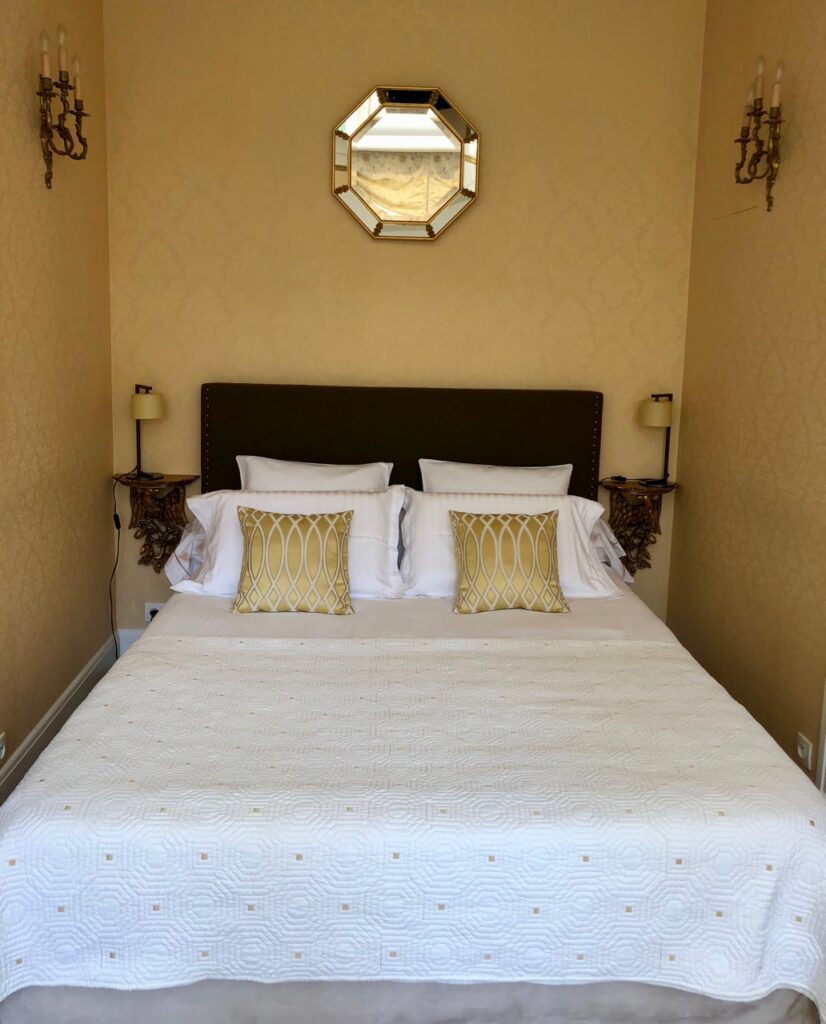 Restera alors à visiter les chambres. La Héritage d’abord, car elle a été héritée, en l’état, des anciens propriétaires, qui en avaient fait la leur. Perso, j’aime très moyennement la déco ultra classique. Mais il paraît qu’elle plaît énormément aux Anglais. Et comme les sujets de Sa Gracieuse Majesté sont la première clientèle de la maison, il n’y a aucune raison de changer…
