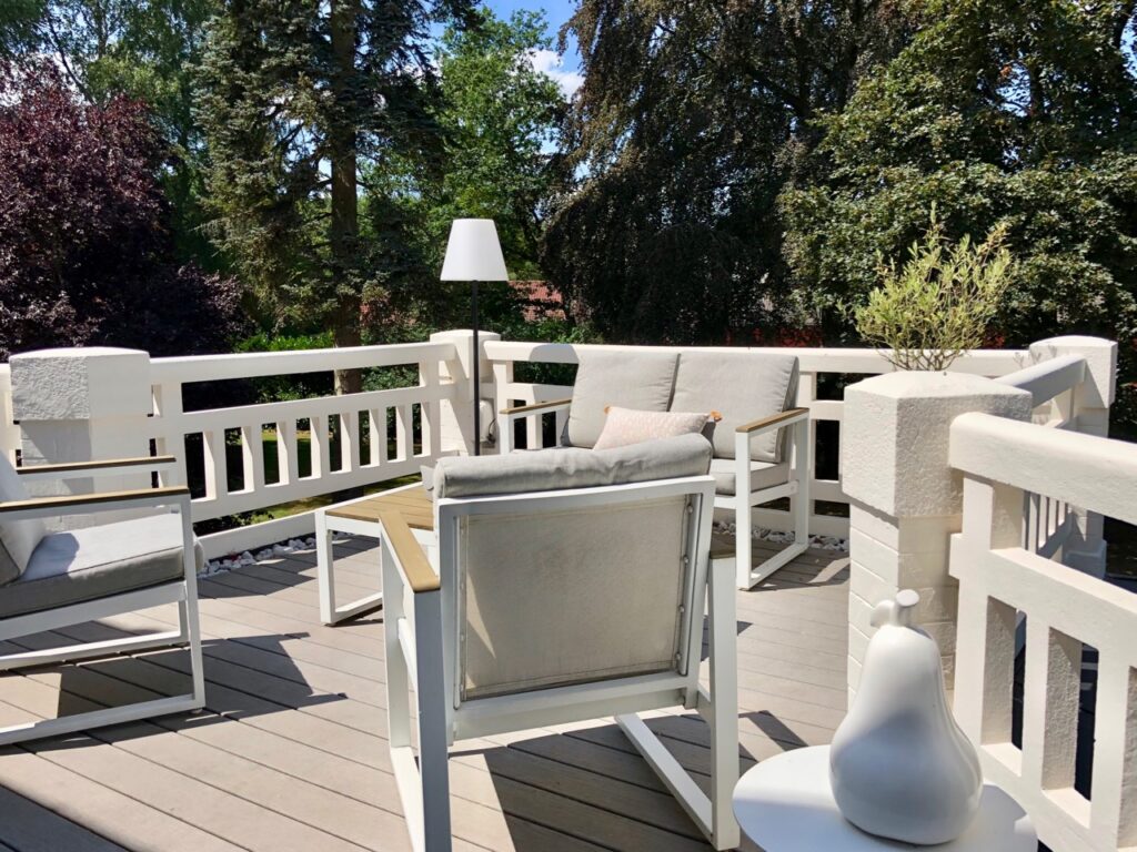 Mais s’il fait aussi chaud que cet été, on peut aussi dîner sur la terrasse de toit, aménagée comme un vrai salon-salle à manger.