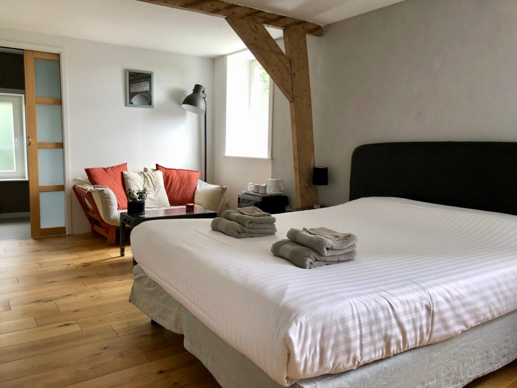À l’intérieur, les chambres sont douces et zen. Pas de grand tralala. Juste ce qu’il faut pour être bien. Lors de mon week-end à Monts et Merveilles, j’ai posé mon sac dans la chambre Le Jardin des Chimères, ma préférée.