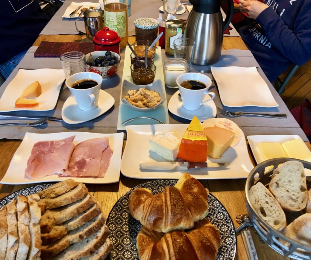 Et comme si cela ne suffisait pas, Virginie fait aussi des merveilles côté cuisine. Vraie perfectionniste, elle a passé un CAP de cuisine option pâtisserie, après avoir quitté son job. Ben si ! Du coup, elle fait plein de trucs elle-même pour le petit-déjeuner. De la pâte à tartiner au chocolat, des yaourts, des brioches. Sans compter les fromages locaux, dont le Mont des Cats, le jambon d’Eric Kiecken, son boucher préféré à Godewaersvelde, le bon pain de son boulanger à Steenvoorde… Mais aussi des confitures maison que l’on peut d’ailleurs acheter sur place, pour emporter en souvenir du week-end.