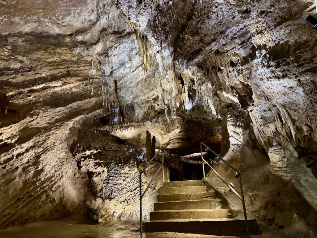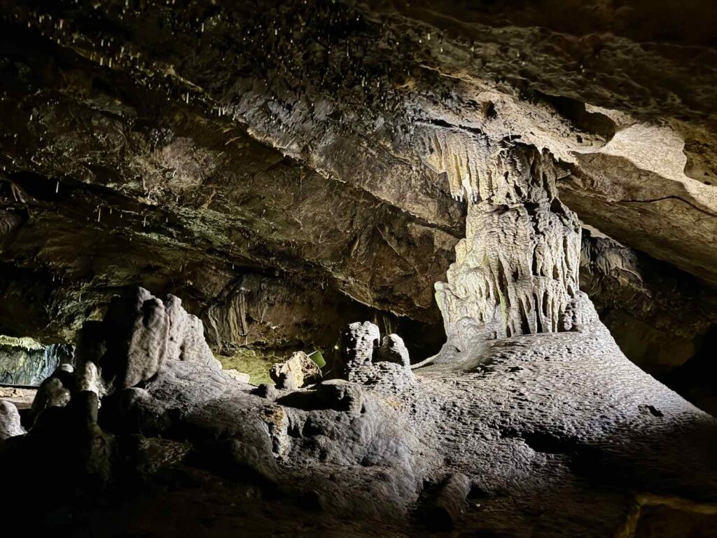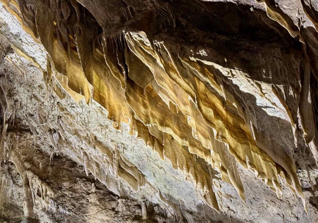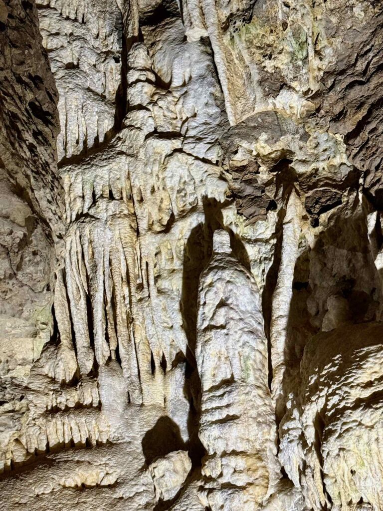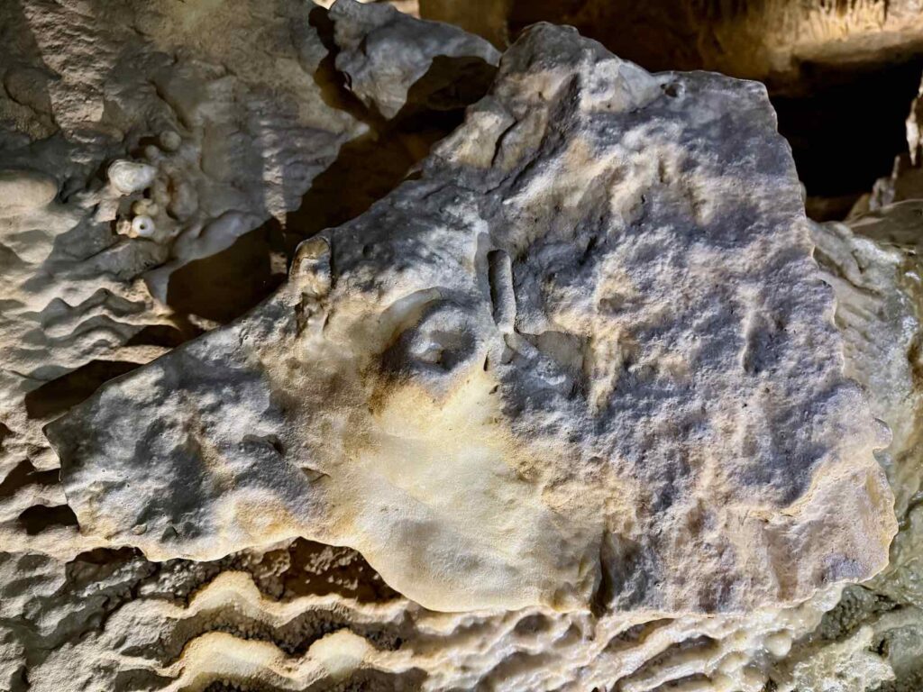 On entre par une grotte artificielle, creusée par la main de l’homme, avant d’arriver à la grotte naturelle, vieille de millions d’années.