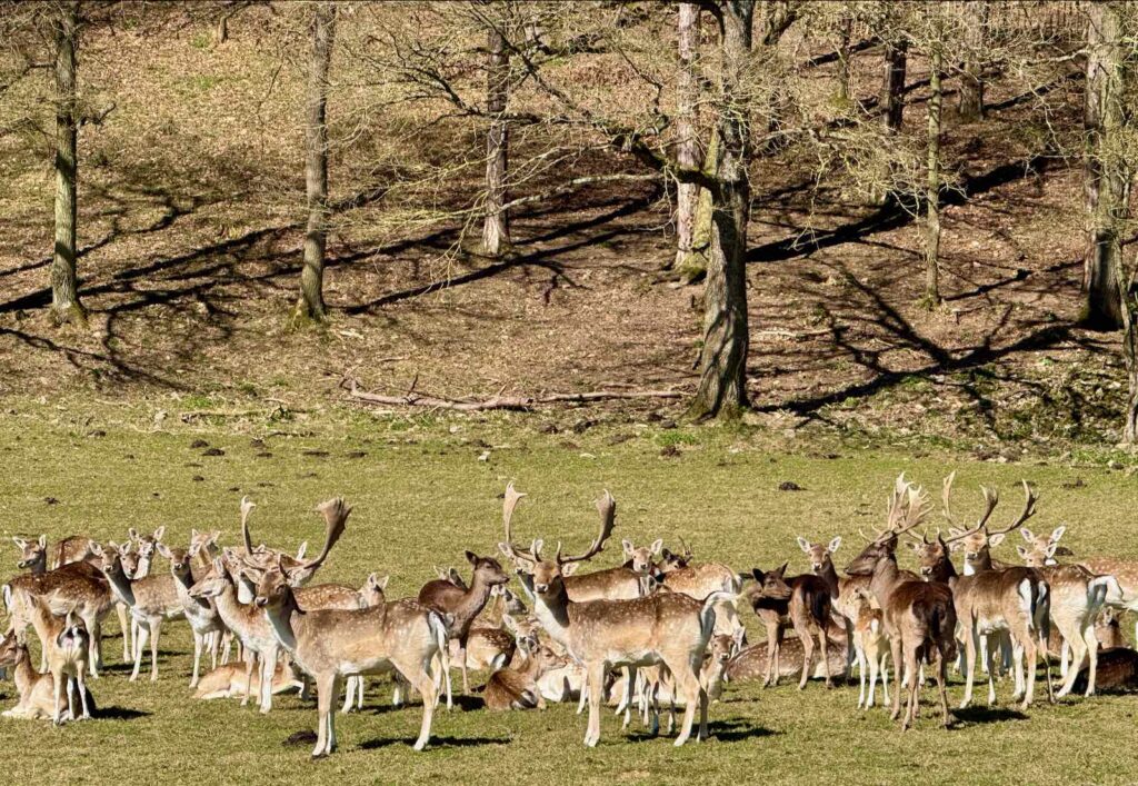 On croise aussi des daims, avec leurs bois palmés, qui apprécient les forêts de feuillus et se reproduisent facilement.