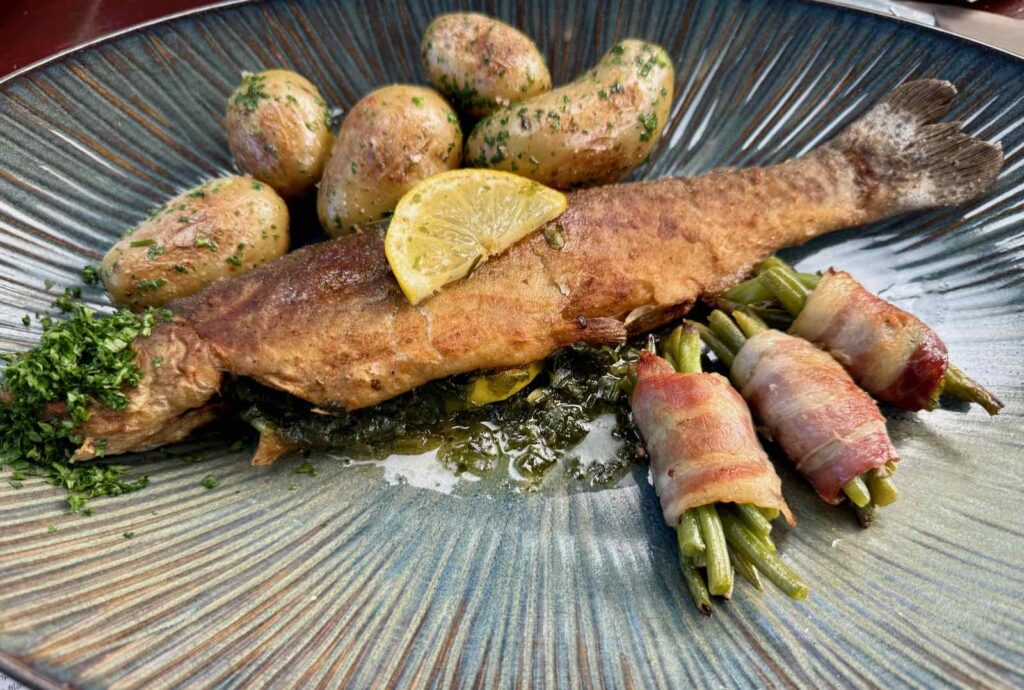 Ma collègue et amie a pour sa part préféré une appétissante truite, avec légumes et pommes de terre. Un peu plus raisonnable…
