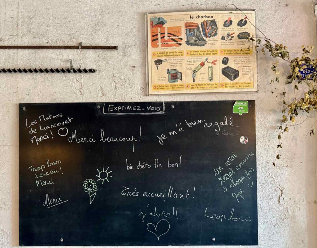 Vous ne finissez pas votre assiette ? Emportez les restes pour le repas du lendemain ! Vous avez un appétit de moineau ? La plupart des plats peuvent être commandés en petit format ou en format normal. Rien ou presque ne doit finir à la poubelle ? Une oie et des poules veillent au grain, si on peut dire… Sans compter les panneaux solaires récemment installés sur le toit, qui permettent une quasi autonomie le midi… quand le soleil est de la partie.