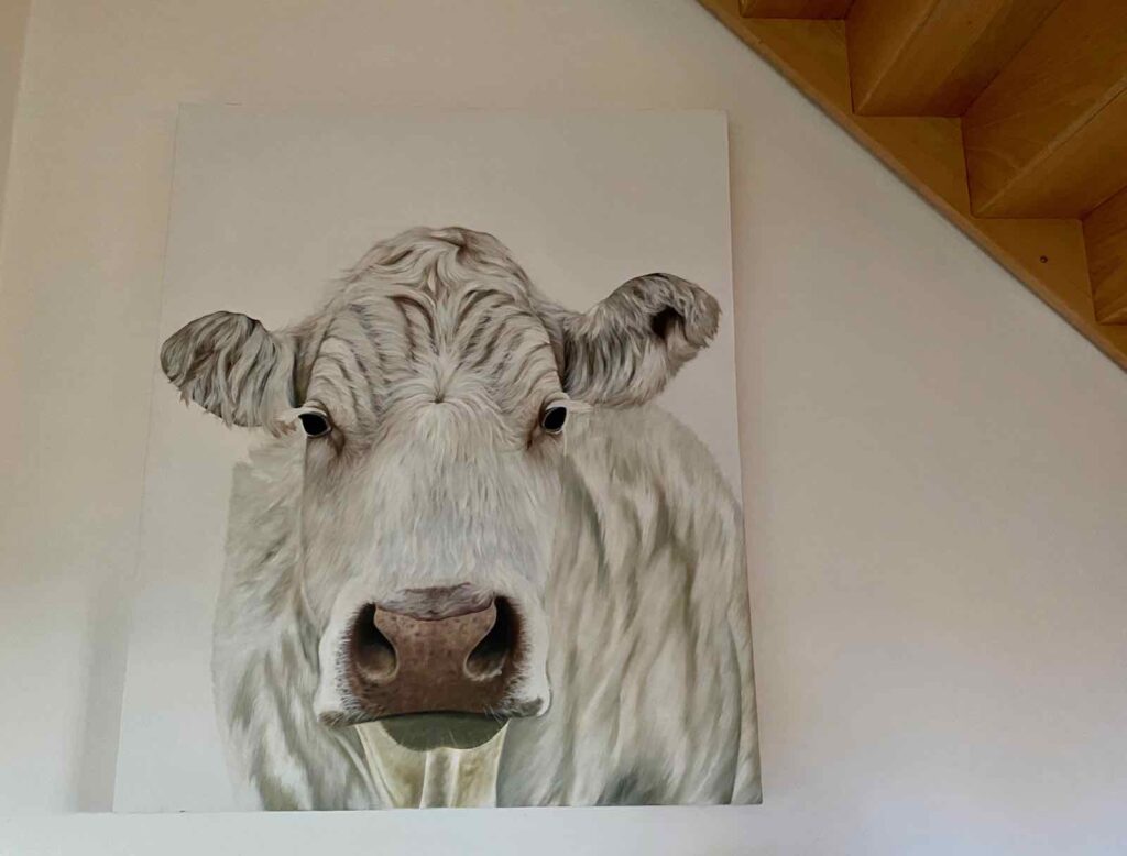 Et c’est vrai aussi quand on va faire coucou aux vaches, au pré ou à l’étable selon la saison. Ou qu’on va admirer les moutons, les poules et les doubles poneys adoptés par Katia et ses enfants.