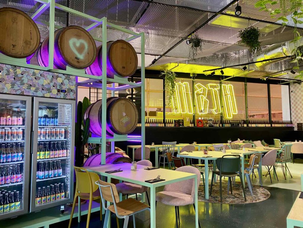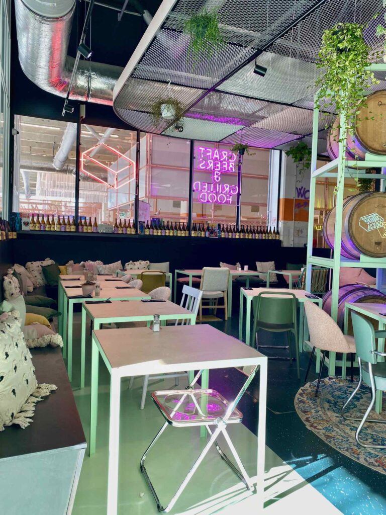 Pour finir, revenons un instant sur le plancher des vaches. Voici quelques photos de HTSM, la taproom située au rez-de-chaussée de la Maillerie, à côté des halles Biltoki.