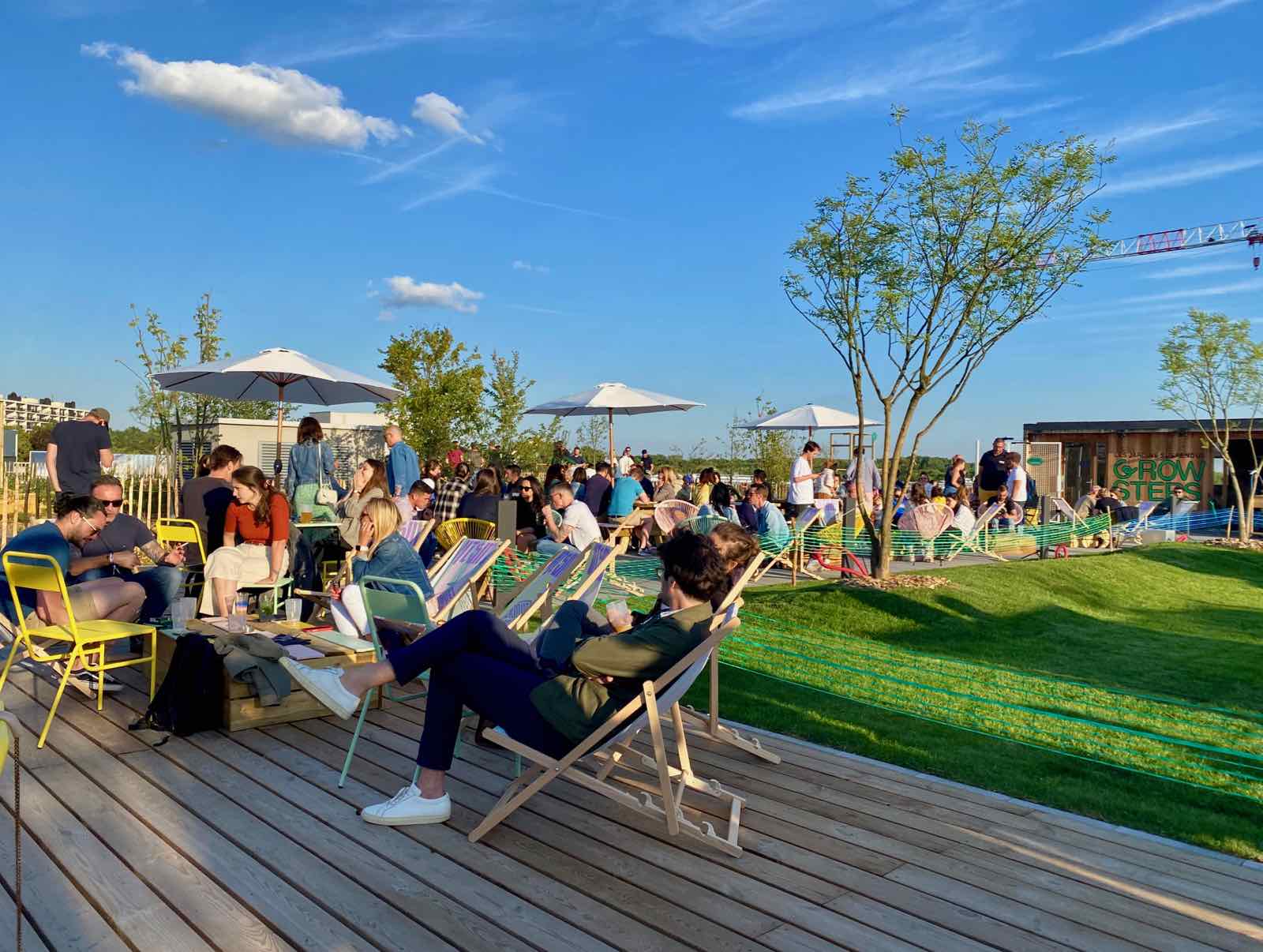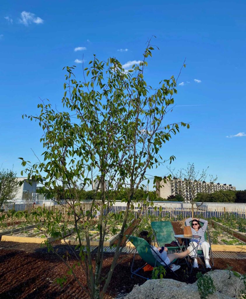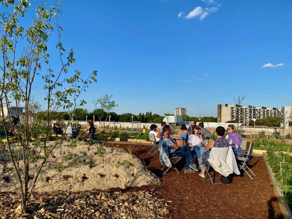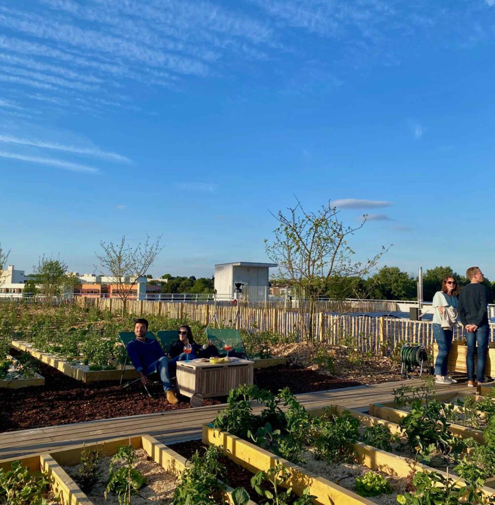 Ce rooftop HTSM, c’est donc un immense toit terrasse, comportant notamment des espaces végétalisés gérés par Growsters (voir sur growsters.fr) . Des jardins partagés et suspendus, composés de mini-parcelles cultivées par des habitants du quartier ou des entreprises. Chacun y cultive ses fruits et légumes, avec la possibilité aussi de s’initier à la permaculture.