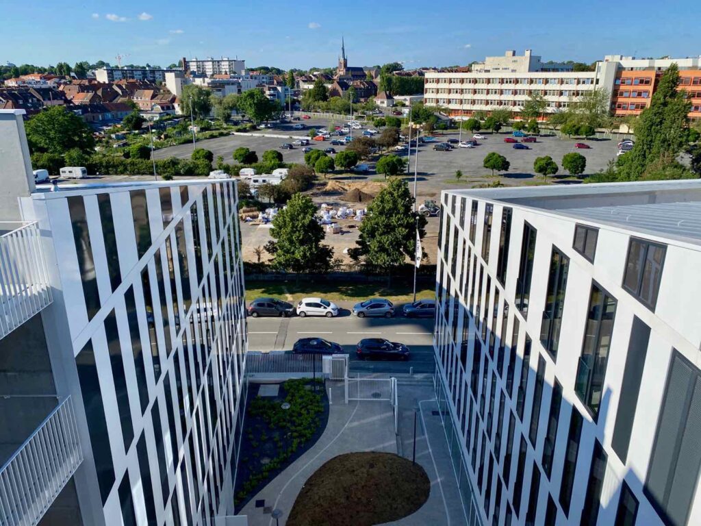 Mais ce qui nous intéresse, c’est la vaste terrasse de HTSM, environ 1200 m2 à 20 mètres du sol. Avec une vue sur tout le quartier, de l’église de Croix, en passant par la résidence Flandres de Croix, à deux pas de là.