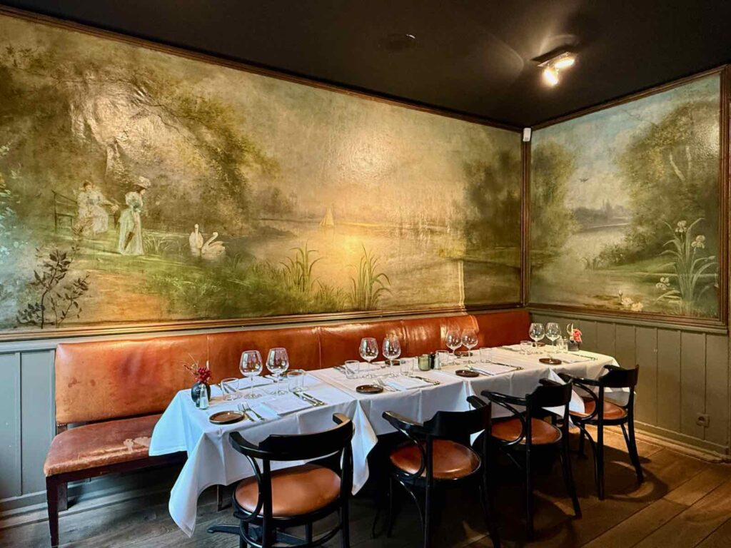 J’ai découvert le Nenuphar, à Afsnee, village voisin de Laethem, juste pour admirer les panneaux décoratifs réalisés par Gustav De Smet. Cette figure de l’école de Laethem n’avait pas trouvé d’autre moyen de payer son repas de noces, en 1898 !