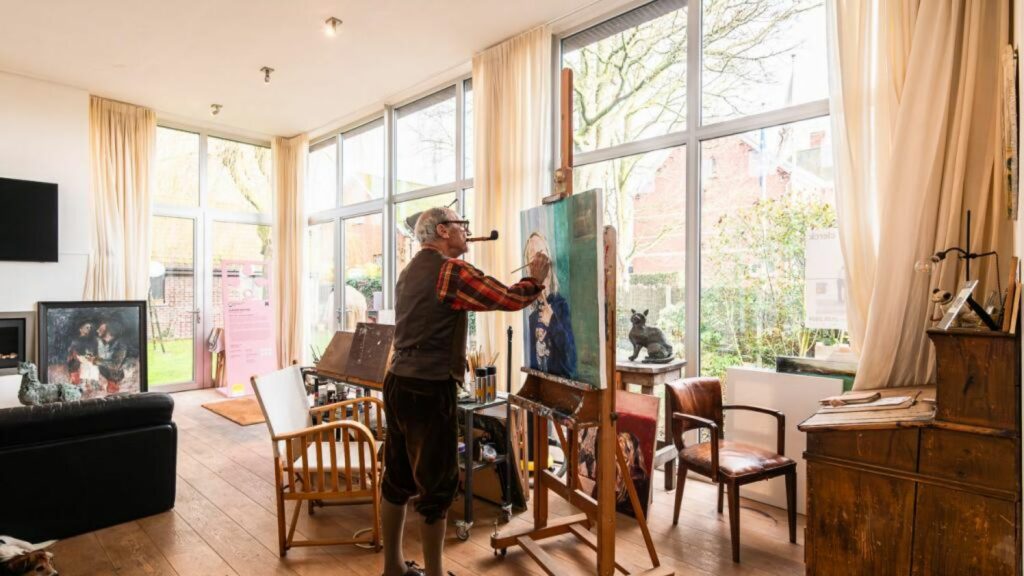 La bonne nouvelle ? Il accueille les amateurs de peinture le dimanche après-midi, dans son atelier. Et en plus, c’est gratuit !
